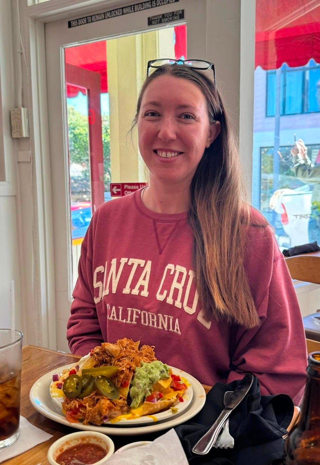 Hey, y’all! I’m Melissa. And yes, that is a large plate of nachos in front of me.